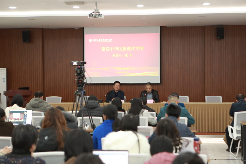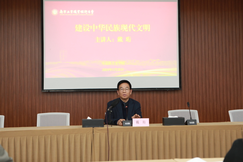 为深入学习贯彻习近平总书记在文化传承发展座谈会上的重要讲话精神,推进中华优秀传统文化更好地融入思政课教学实践,3月20日下午,马克思主义学院邀请国家公共文化服务体系制度设计研究首席专家,江苏省文史研究馆馆员、知名文化学者戴珩来校开展“建设中华民族现代文明”的专题报告。马克思主义学院党总支书记王亚峰、副院长徐兴华(挂职)、全体思政课教师参加了本次活动,东中西部马院(思政部)共建联盟成员的100余位教师通过线上聆听了该报告。