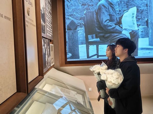 学生参观雨花英烈生平事迹纪念馆场景