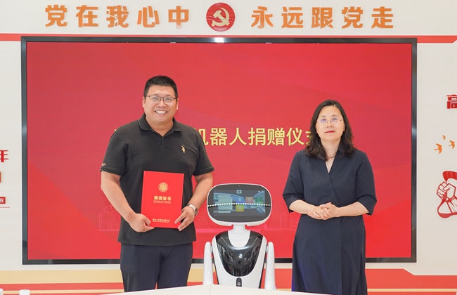 殷殷母校情,悠悠赤子心。6月6日下午,“一站式”学生社区服务中心服务机器人捐赠仪式在永利官网顺利举行。苏州穿山甲机器人股份有限公司董事长、数控9601班校友宋育刚,销售总经理顾银剑,技术部部长刘群,校党委常委、副校长魏萍,学生工作处、发展规划处、机械工程学院、交通工程学院、计算机与软件学院、商务贸易学院等部门和学院负责人出席仪式。仪式由校党委常委、副校长崔新明主持。