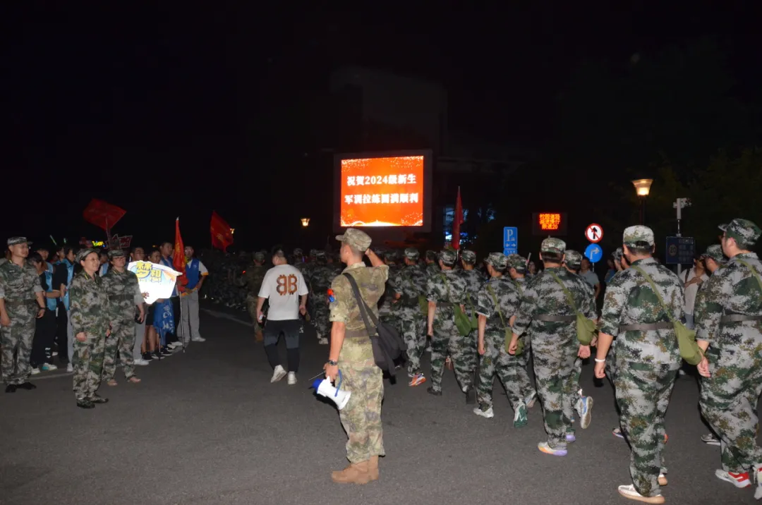 9月12日晚,永利官网2024级参训新生,步伐矫健,精神抖擞,圆满出色完成军训拉练任务。