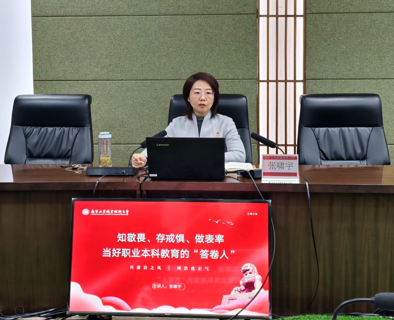 张啸宇围绕“十八大以来党风廉政建设与反腐败斗争的新形式”“高校党风廉政建设与反腐败斗争”以及“忠诚干净担当,当好职业本科教育‘答卷人’”三个方面,通过生动案例揭示了违纪违法行为带来的严重后果与危害。她结合辅导员工作的特点指出,辅导员想守好廉政关,首先要自觉践行“两个维护”,铸牢对党忠诚的政治品格,其次要自觉遵守纪律红线,永葆绝对干净的政治本色,最后要规范权力行使,始终把人民群众利益放在权力行使的最高位置。